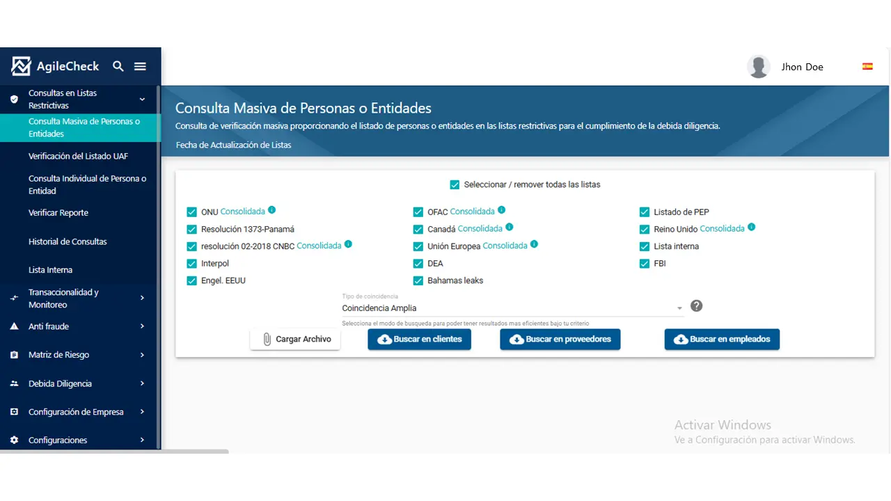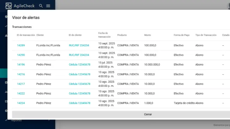 AgileCheck AML permite a tu empresa identificar, evaluar y monitorear clientes y proveedores. Con listas internacionales y locales actualizadas, matrices de riesgo dinámicas y reportes automáticos, tu equipo gana control y eficiencia.